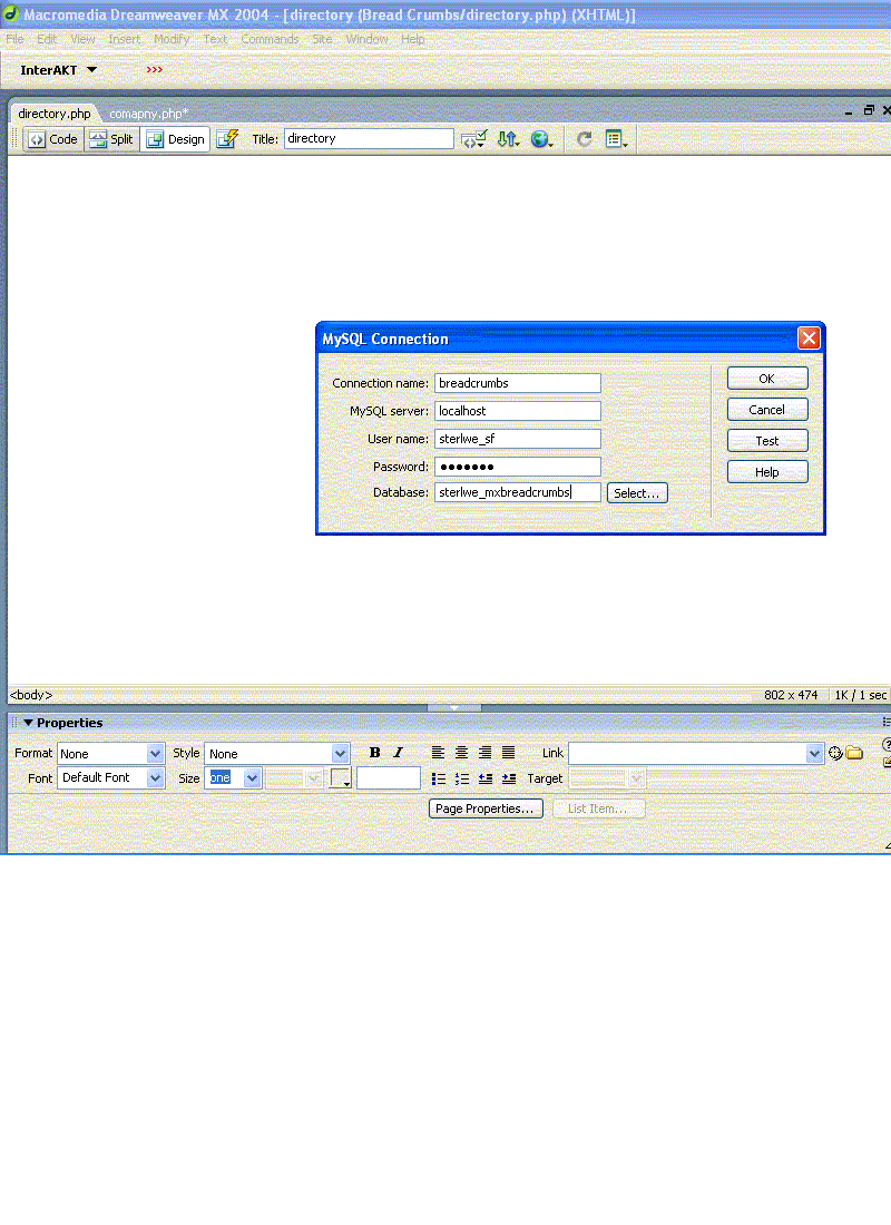 acsteve Posted October 15, 2005 Author Posted October 15, 2005 Something else if anyone who has seen this before. I have a resellers account (that is in one of my other replies actually everything is in my other replies Any way I have a phpbb1 on one of my other sites. duncanvilleaa.org. Now as you may know one has to have a sql database for that and TCH sets it up auto like so folks like me don’t ask a whole bunch questions about it. So I took my aa site which is already in DWMX2004 and i tried for the first time( never had to before) to hook up to the database thru DWMX 2004 and could not. I changed over to the aa site in dw and went to set up the mysql connection . I filled out the info the dw ask in the sql connection box and the dag gum thing still trys to hook up to BREADCRUMBS (and you thought we were going to get away from breadcrumbs . So now my thinking is this may help someone help me that has come across this problem..Is it the resellers account that gets the program confused about something? So any help would bring a big smile to my face.. Thanks Steve Quote